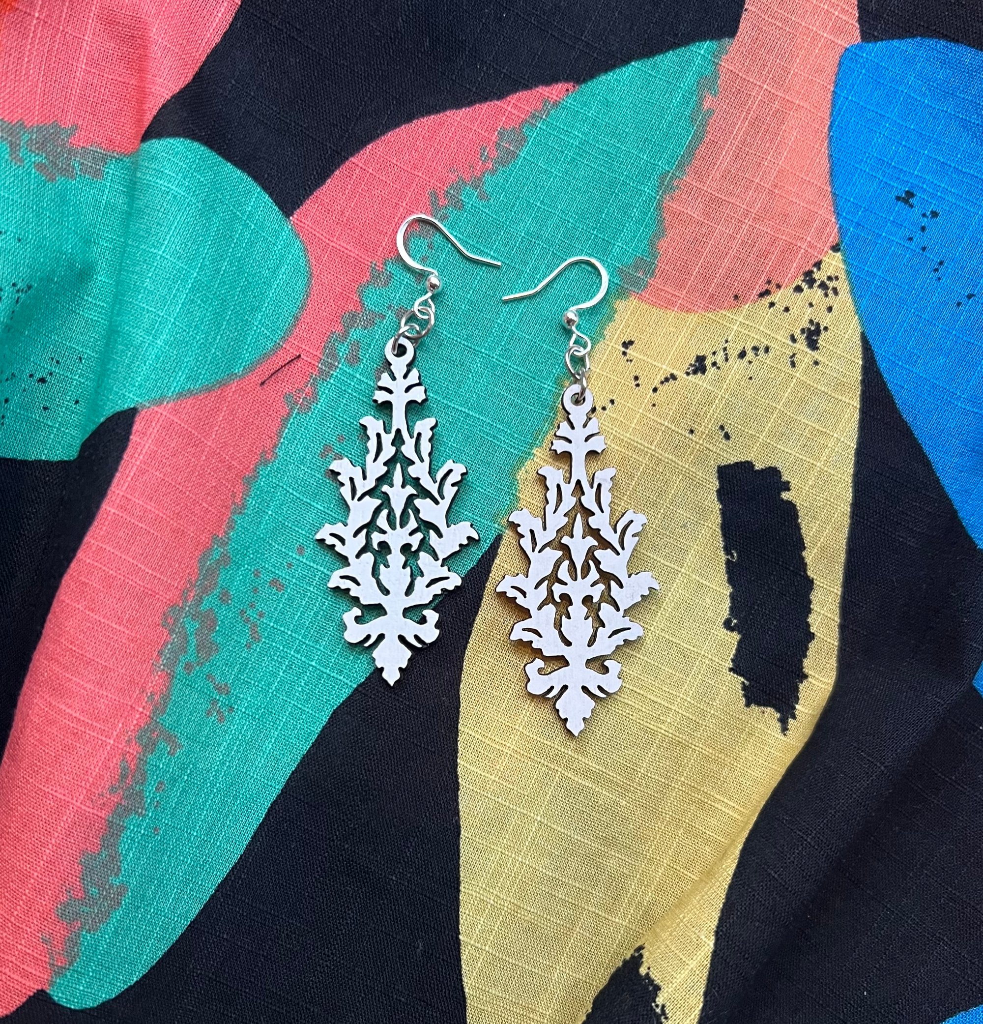 Coloring is stained into the wood with a non-toxic natural dye. Ear wires are silver-plated surgical steel and nickel-free for sensitive ears.