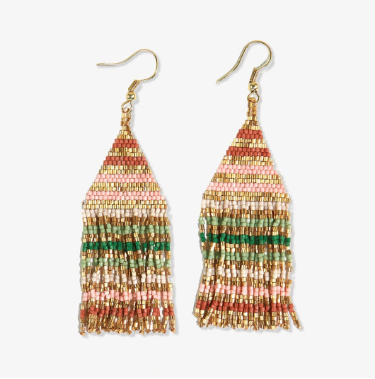 Lexie Gold Stripes Beaded Fringe Earrings by Ink & Alloy