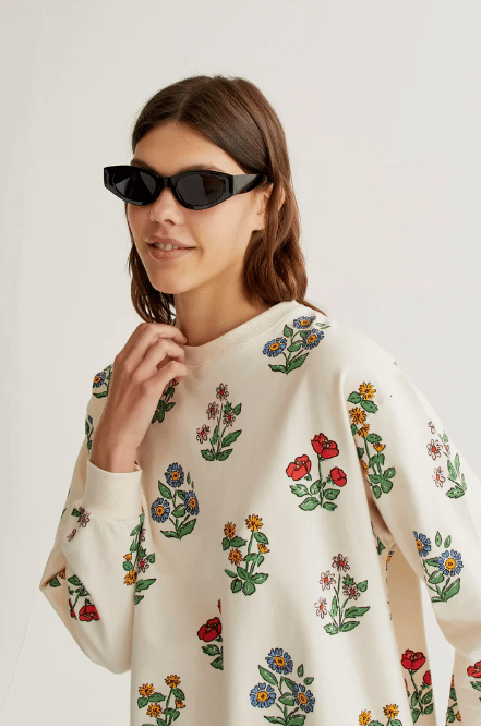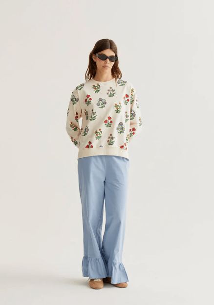 100% cotton sweatshirt with a gardener print. Crew neck and long sleeves. Slightly dropped shoulders. Ribbed trim details. The model is 177 cm tall and wears size S.