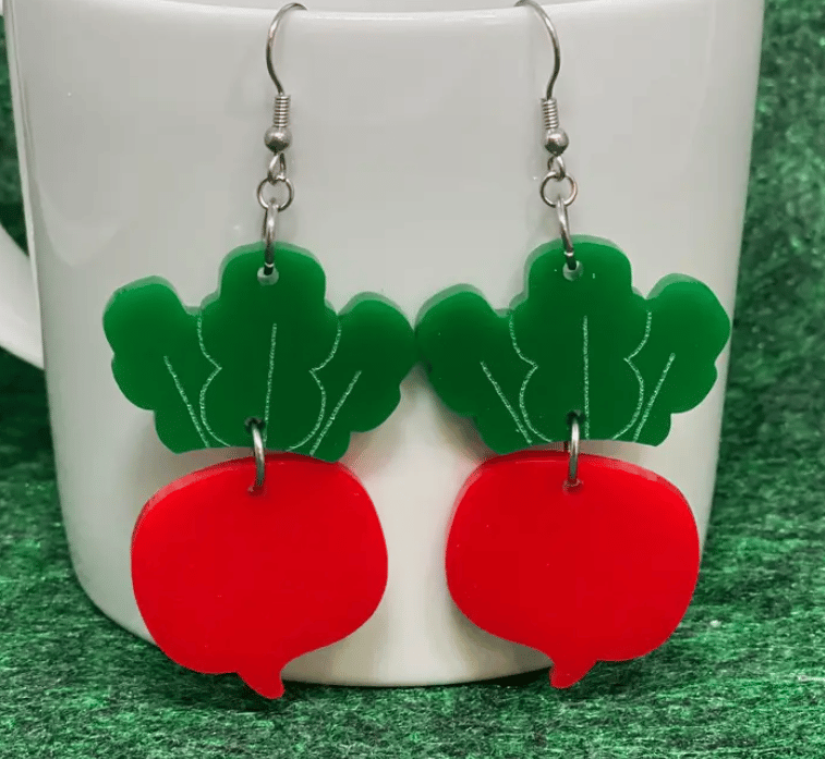 We love a lightweight earring with a veggie theme! These beauties are made from acrylic and easy to wear all day.